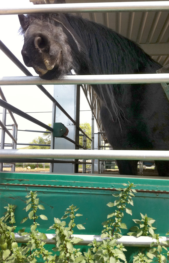 This weekend I had a surprise discovery when I saw a plant in my horses pen that I had never seen before. It was under the rain gutter and growing so lush and deep green. Being a California native all my life a lush green plant is an attractive site to see in this usually brown, dry and hot dusty area. Naturally I was curious to touch and that is when this electric plant attacked!