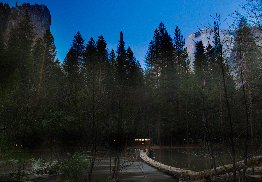 At the end of the day we watched night fall on our campsite under the presence of half dome in the mist.