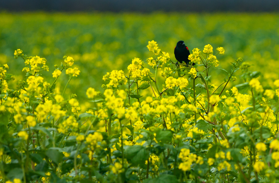 and once the sun starts to shine the mustard is going to bolt upright to the heavens! This red winged black appears to be waiting for it.
