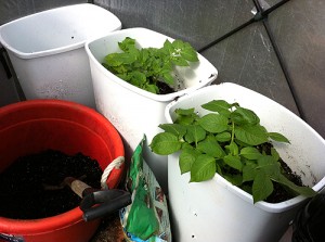 • My potato plants seem to be doing well as you can see from above. Both store bought and organic from the garden store. We’ll see when I harvest if I only get pretty plants or if I actually get fresh buttery potatoes!