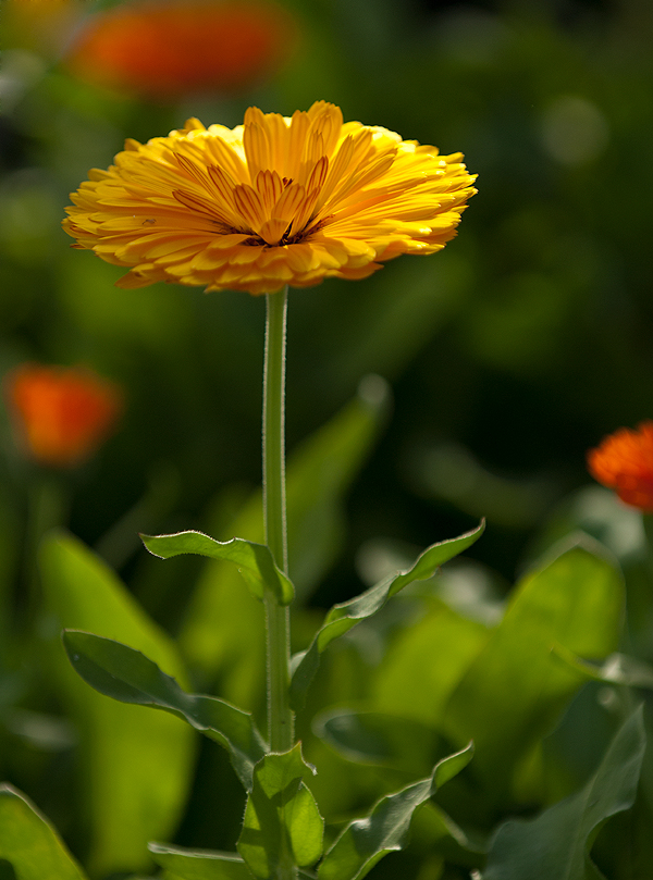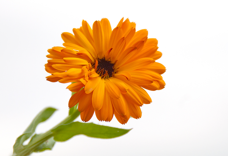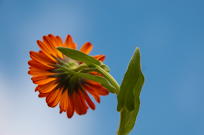 Calendula flower against a white cloud