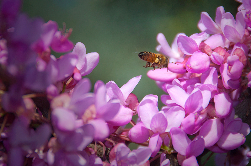 Bee with Western Redbud Flowers