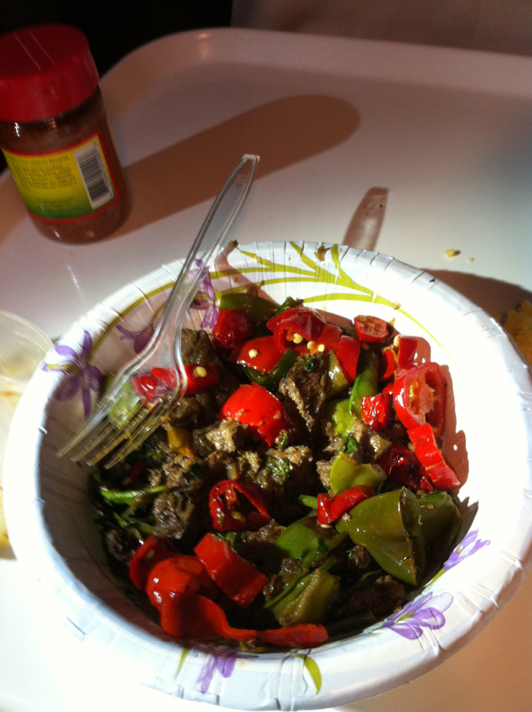 I made a little furrow and just poured the inoculate on the soil. Then I planted a seed over that and then covered that with soil and watered well. There are lots of various methods online but that is what I did. We enjoyed this dish made with meat and fried senorita jalapenos and onions from the freezer from last years harvest. The peas were stir fried in the pan along with the meat and the already cooked mild peppers and caramelized onions! YUM!