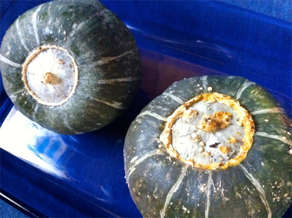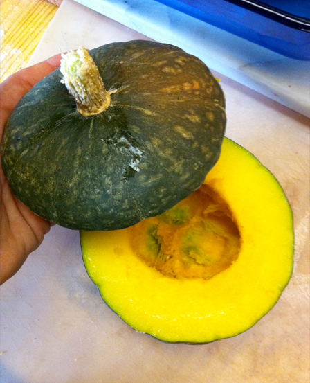 I only got two buttercup squash off of my large plant but they were good. I waited to pick them until the stem was shriveled up which seemed to be the right thing to do. It came easily off the plant. The squash was firm. I cut the top off of it and scooped out the seeds.