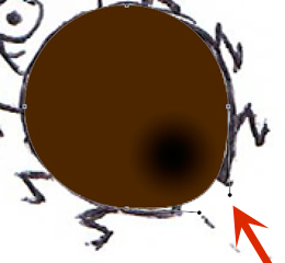 Not that this is not a scientific drawing but a lady bug body isn’t perfectly round so to give it some identity I used my Direct Selection Tool (A) to click the path of the circle and this revealed the anchor point with the various handle bars. I could then stretch them to reshape the bottom of the bug.
